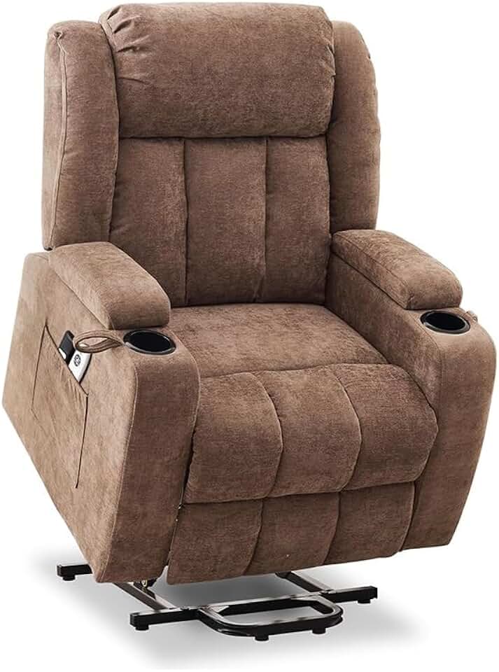 Brown Electric Power Lift Recliner Chair for Elderly, Electric Massage Heated Ergonomic Recliner Chair Sofa, Fabric Lift Living Room Chairs with 2 Side Pockets, and Cup Holders, Remote Control
