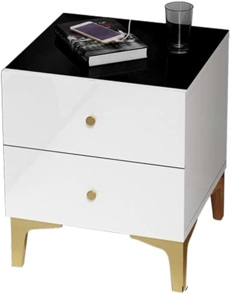 Bedside Modern Iron Golden Nightstand Coffee Sofa End Bedside Table Home Furniture Cabinet Cupboard Bedroom Bedside Cabinet Table (Color:Noir)