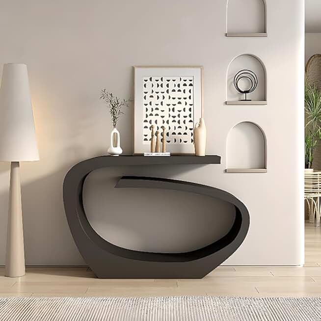 LITFAD Console Accent Table Art Deco Alloy Abstract Hall Table with 1 Piece Rectangle Top Modern Entrance Table Scratch Resistant Console Sofa Table Porch Table, Black 47" L x 12" W x 33.5" H