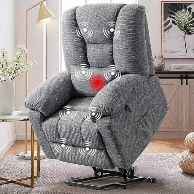 Electric Power Lift Recliner Chair for Elderly, Fabric Electric Power Recliner Chairs with Heated Vibration Massage, Heavy Duty Electric Sofa with Side Pockets, USB Ports, Remote Control, Gray