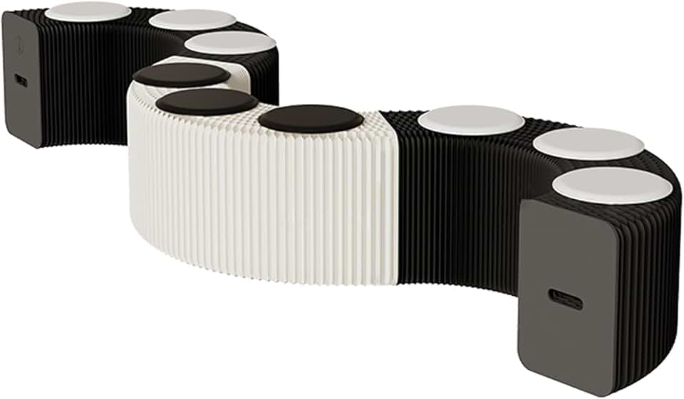 Folding Sofa Side Stools, Extendable Folding Benches, Exhibition Product Display Table, Furniture Low Stools Shoe Changing Stools, Black and White Splice Accordion Paper Stool