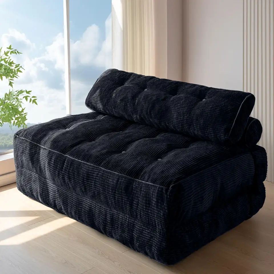 MAXYOYO Folding Sofa Bed, Convertible Sleeper Chair with Pilow Foldable Matress with Back Support, Portable Fold Out Chair Bed Comfy Floor Sofa Lounge for Living Room Bedroom, Black, Double
