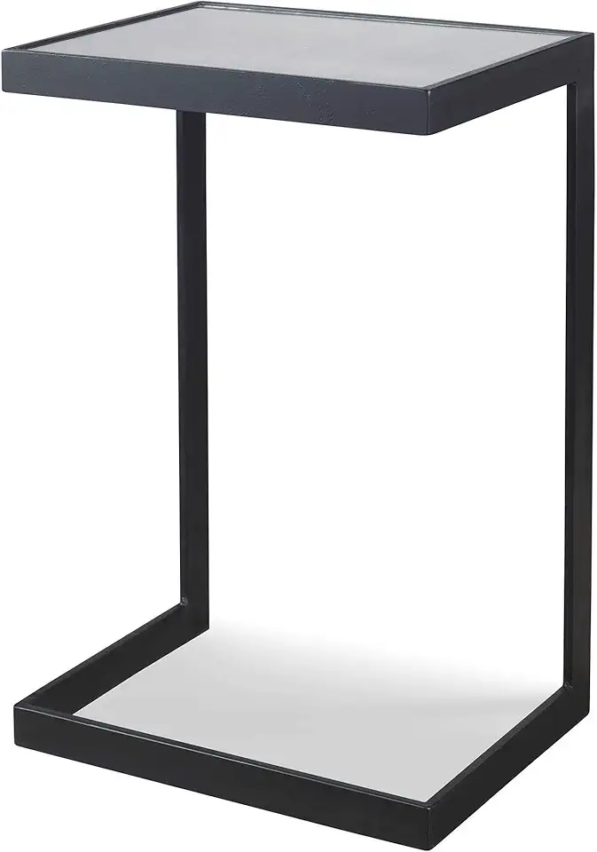 Minimalist Cantilever Black Iron Accent Table | Sofa Arm Chair C Shape Mirrored