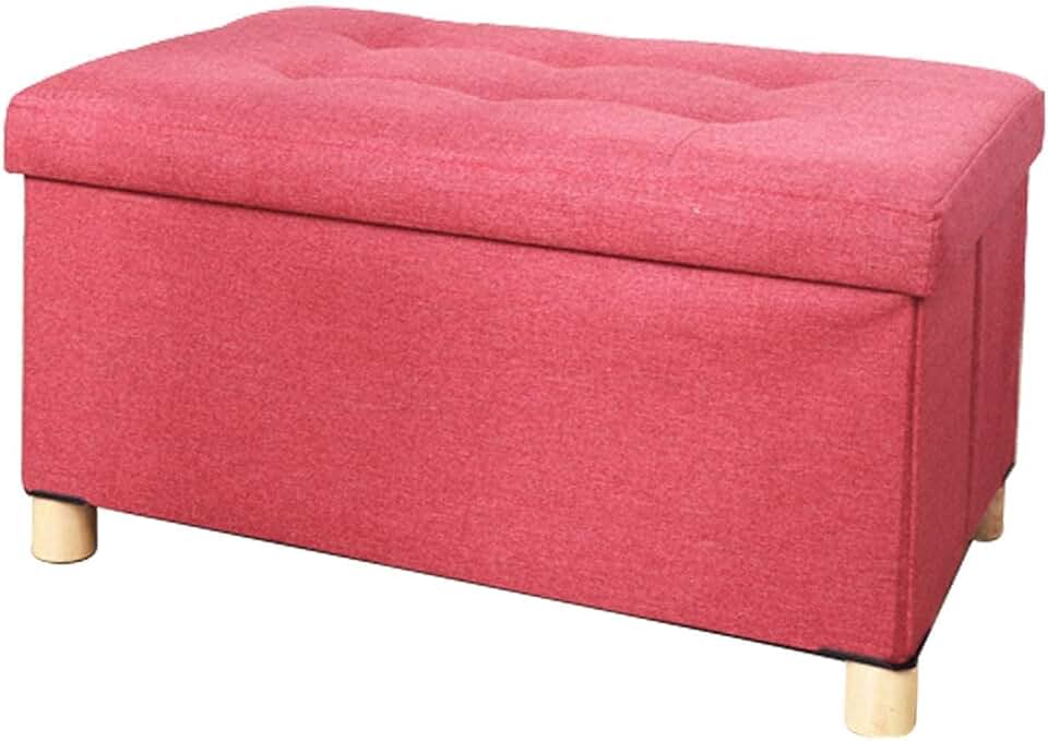 Linen Ottoman,Folding Storage Box Footrest Home Footstool Sofa Stool Suitable for Living Room Bedroom Patio-60x38x34cm(24x15x13inch)-red