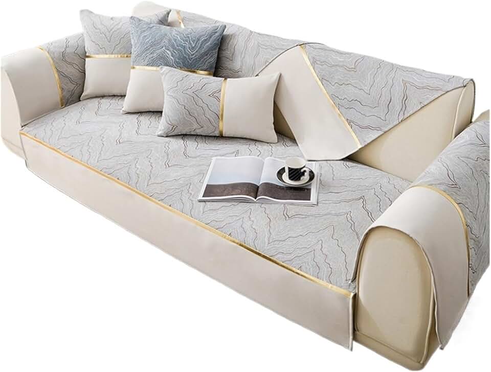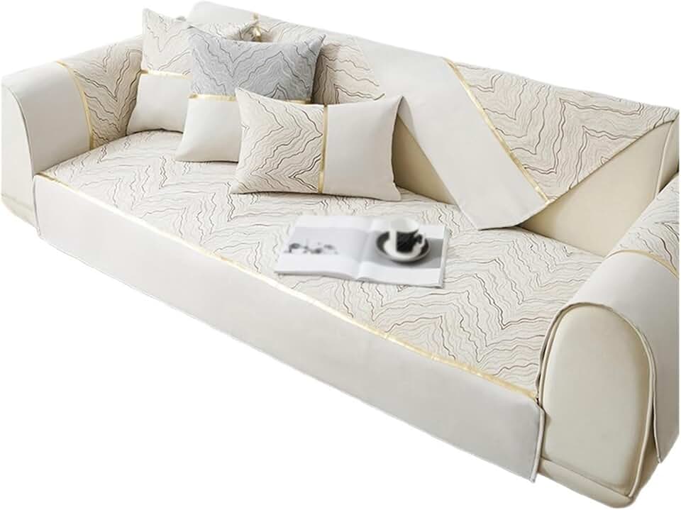 All-Wrapped Cloth Cushion Armrest Cover Towel Sofa Cushion Four Seasons General Easy to Slip Light Wavy Sofa Cover(110 * 180cm)