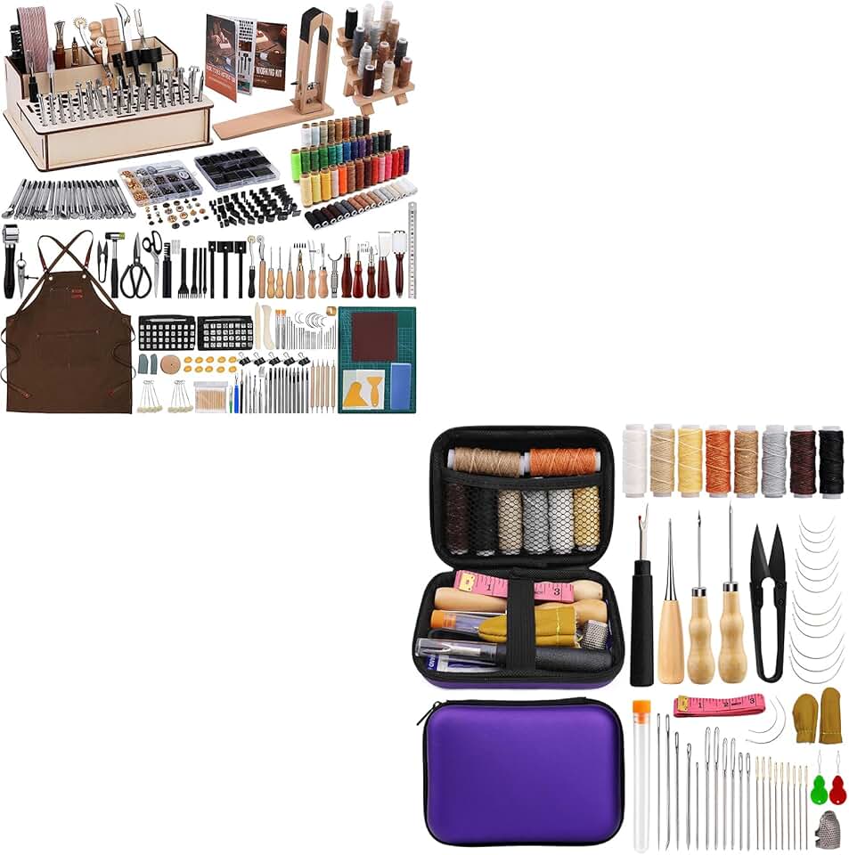 628Pcs Leather Working Tooling Set for Beginners, Starter Leather Working and Tool Supplies with Leather Pony and Heavy Duty Upholstery Repair Kit for Carseat Backpack Carpet Boots Shoes Canvas Sofa