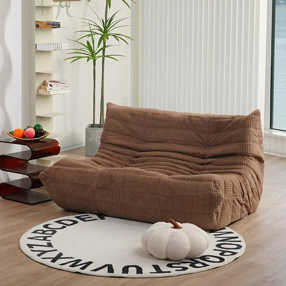 Fireside Loveseat, Mid Century Armless Twin Size Floor Sofa, Soft Premium Corduroy Floor Lounge Chair, Foam Sofa Accent Chair for Living Room Bedroom and Office, Brown Sugar