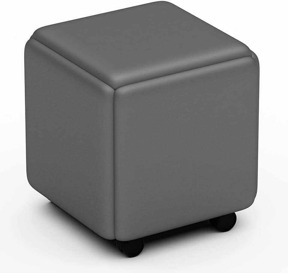 5 in 1 PU Leather Seating Nesting Ottoman Cube with Swivel Casters Stackable Sofa Chair Stool Movable Footstool Dressing Chair for Living Room Bedroom Colorful (Size : Gray B)