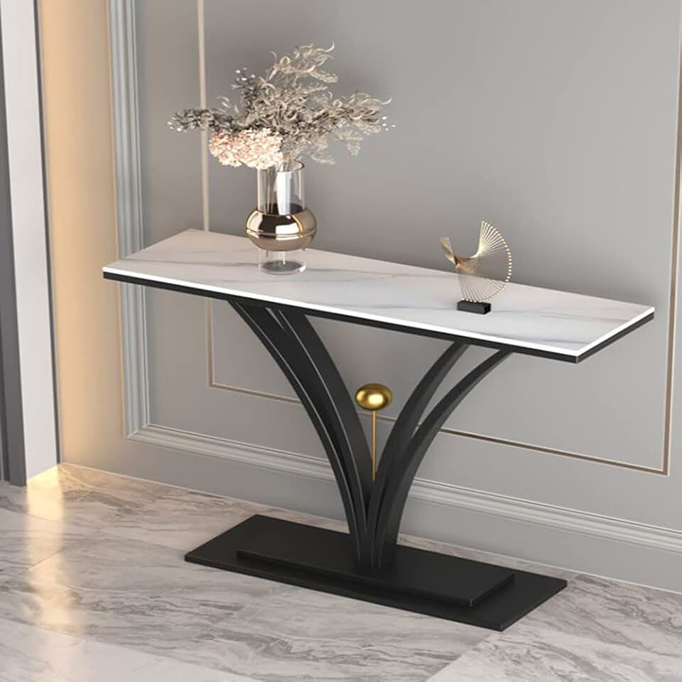 Modern Entryway Table, Contemporary Accent Table, Slate Console Table, Glam Rectangle Sofa Table with Double Arc Base, for Entrance, Living Room, Foyer(Black)