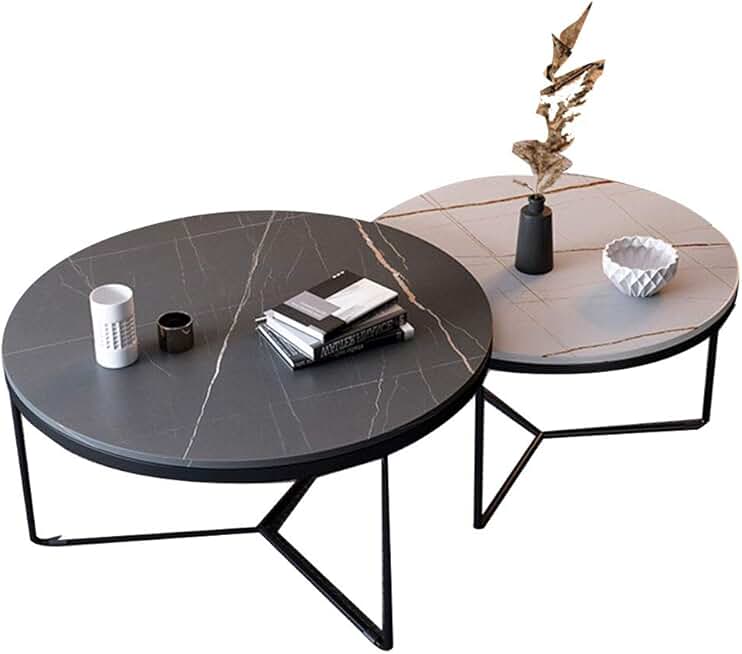 Side Tables Sofa Console Tables,Versatile Round Coffee Table Set of 2,Metal Frame Modern Decor Furniture for Living Room, Bedroom & Small Spaces