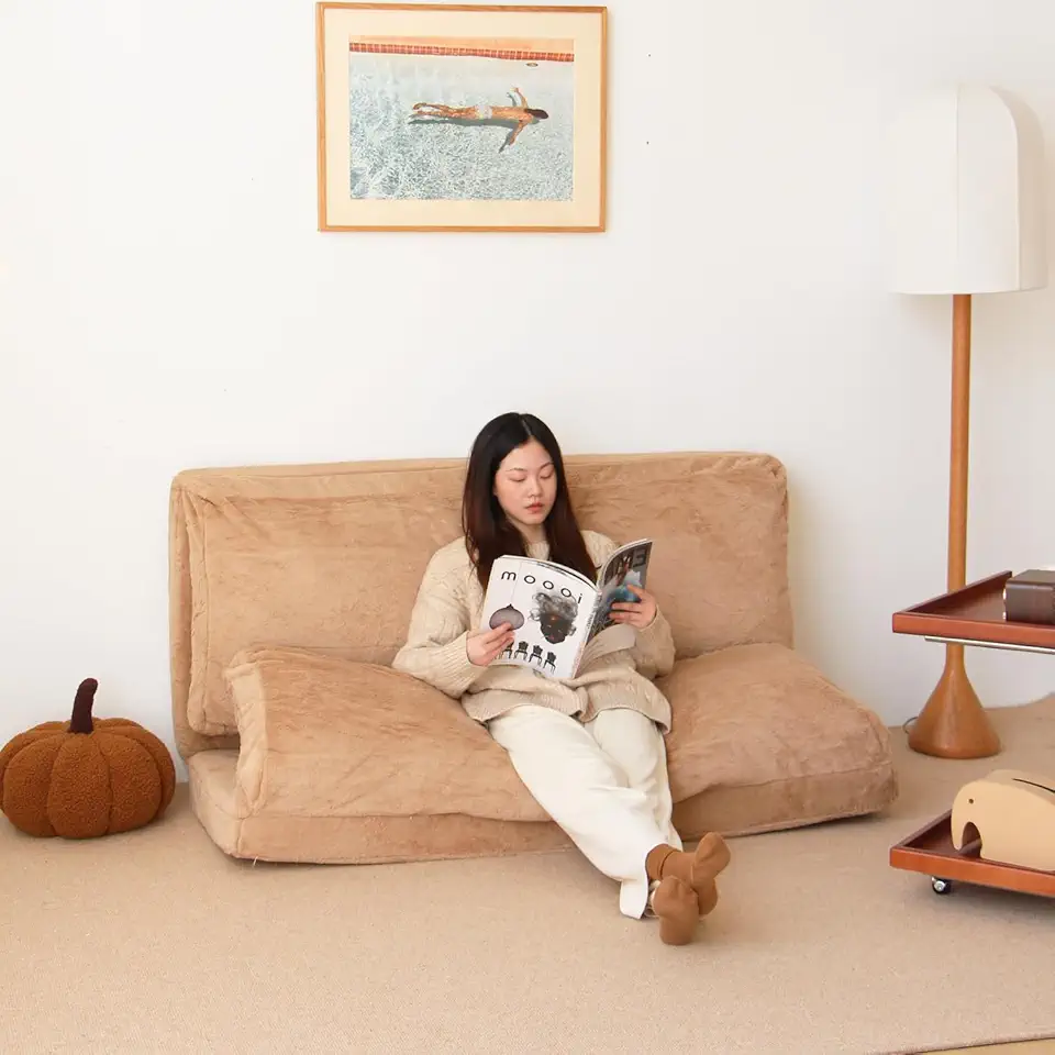 BYBYME Folding Bean Bag Chair for Adults, Large Beanbag Convertible Bean Bag Sofa, 3-in-1 Bean Bag Couch Faux Fur Floor Sofa Dog Bed with 2 Pillows in Bedroom, Living Room, Apartment