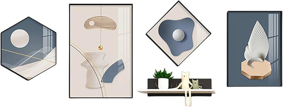 Wall Art Set of 5 with Shelf, Modern Simple Decorative Painting, Sofa Background Wall Mural, Minimalist Natural Combination Wall Painting for Living Room(16 * 24in)