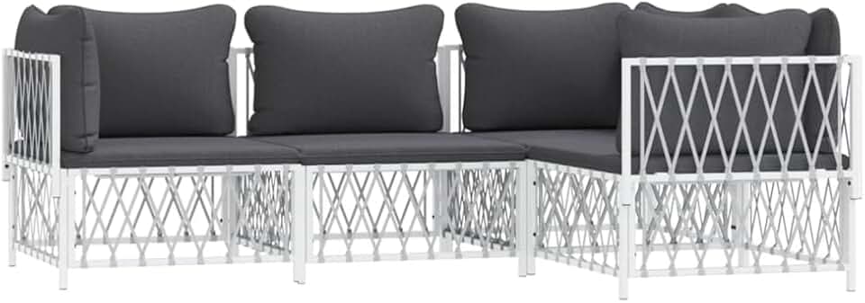 vidaXL White Patio Lounge Set - Modular Design with Powder-Coated Steel Frame - Durable Woven Fabric Material - Includes 3 Corner Sofas, 1 Middle Sofa, and Cushions