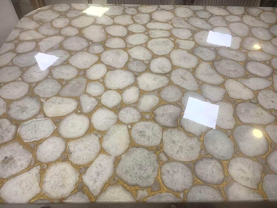 Light Gray Agate Coffee Table Top with Royal Look Rectangle Shape Resin Sofa Table for Living Room Decor 24 x 36 Inches