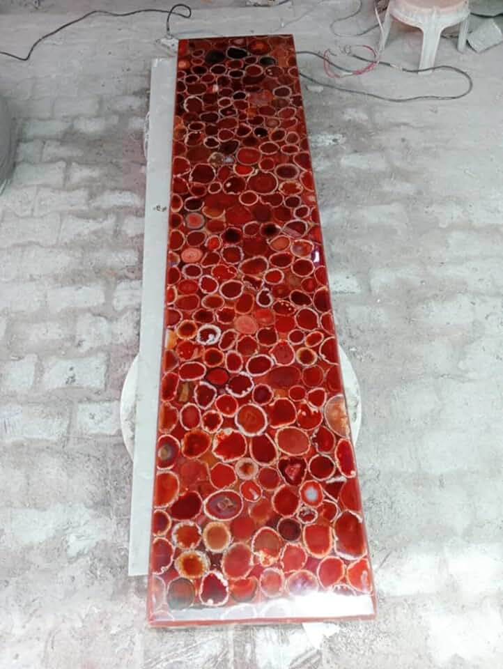 24 x 48 Inches Red Agate Sofa Center Table for Garden Area Decor Rectangle Shape Resin Dining Table Top