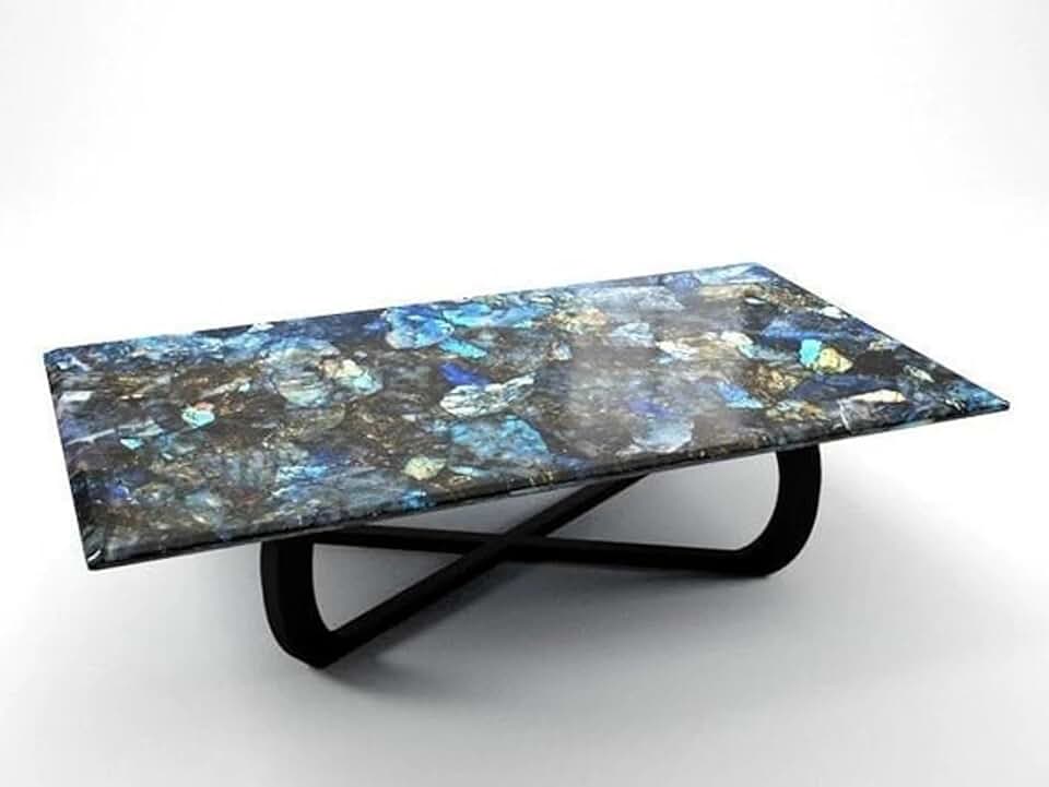 24 x 36 Inches Labradorite Patio Sofa Table for Restaurant Decor Rectangle Shape Resin Coffee Table Top