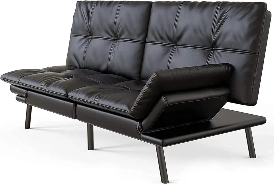 IULULU Futon, Convertible Memory Foam Couch Bed, Modern Folding Sleeper Sofa with Quick Adjustable Armrest and Backrest for Studio Apartment, Dorm, Living, Guest Room, Home Office, Black