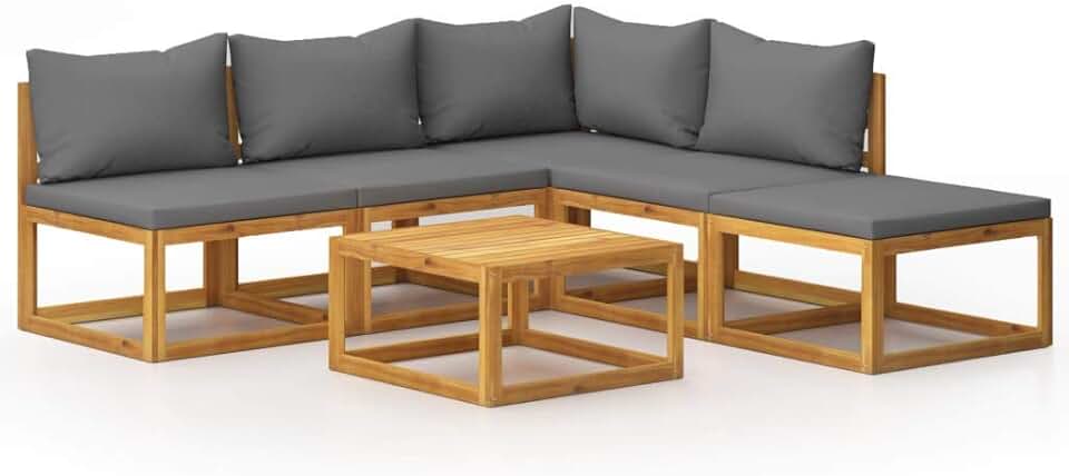 Solid Acacia Wood Outdoor Lounge Set – 6-Pieces | Patio Furniture Set with Dark Gray Cushions | Includes Table, Sofa & Footrest | Modern Design | Weather Resistant for Garden or Patio Use.