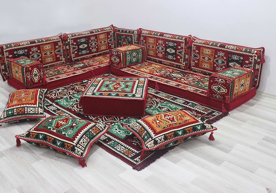 Corner Floor Sofa Seating Set, U Shaped Arabic Sofa Set, Oriental Floor Seating, Floor Cushions, Living Room Sectionals, Arabic Majlis Jalsa (U Sofa Full Set)
