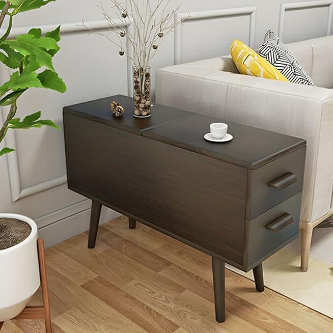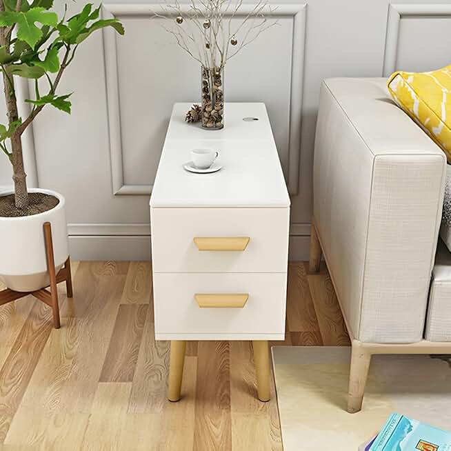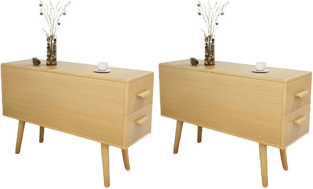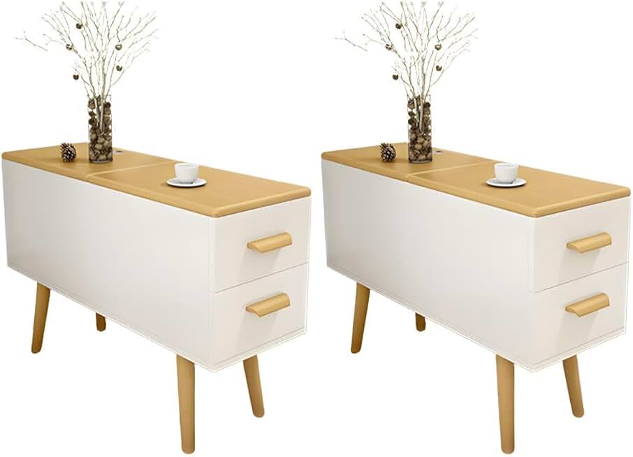 End Table, Modern Wood Table Sofa Side Table with Drawers and large Storage for Compact Storage Home Office Furniture - 2 Natural Wood/White