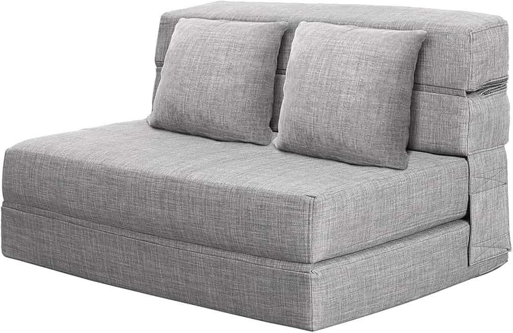 ANONER 60" Folding Sleeper Chair Sofa Bed Lazy Couch with 2 Pillows, Queen Size Memory Foam Washable Cover, Light Gray
