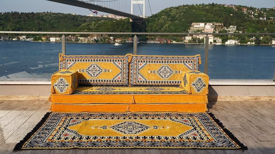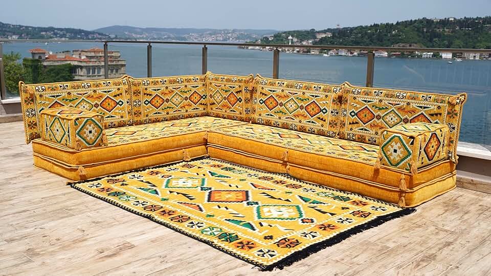 Yellow Corner Sofa Set, Oriental Floor Seating, Living Room Sofa, Sofa Slipcovers, Patio Sofa, Loveseat Sofa (Sofa + Rug, 8'' Thickness (20 cm))
