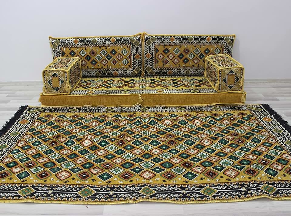 Arabic Sofa Set, Moroccan Sofa, Arabic Seating Floor Sofa, Pallet Sofa, Sofa Bed, Ottoman Couches, Corner Sofa, Modular Sofa (Sofa + Rug)
