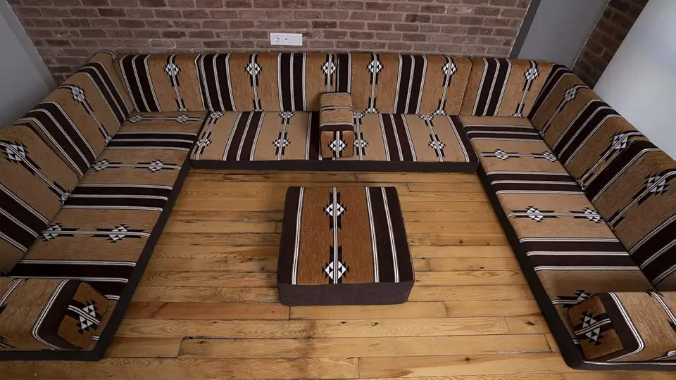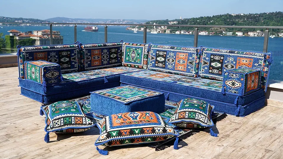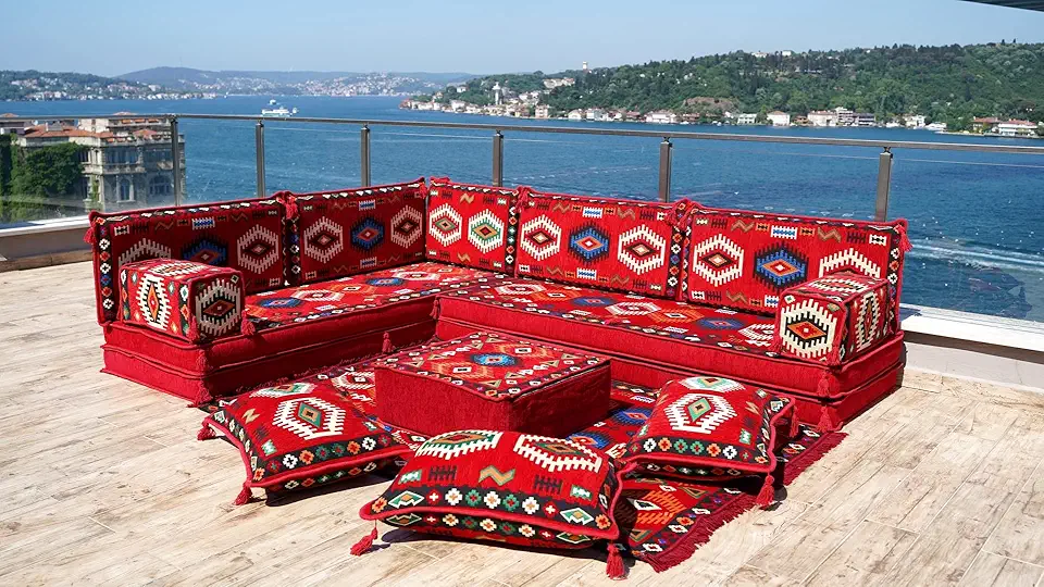 U Shaped Floor Corner Sofa, Floor Cushions, Moroccan Sofas, Home Decor, Turkish Floor Sofa, Sofa Bed, Pallet Cushion, Ottoman Couch (U Sofa + Ottoman)