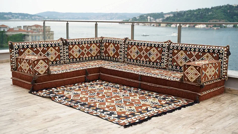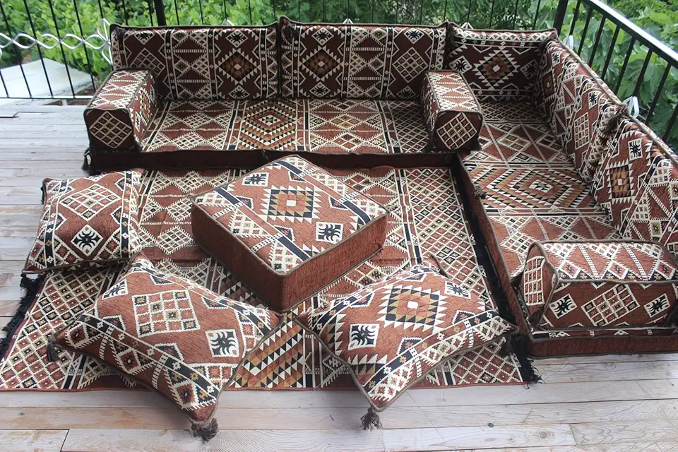 Brown L Shaped Outdoor Patio Cushions, Corner Floor Couch, Floor Pillows, Arabic Majlis, Interior Oriental Design, Floor Cushions, Oriental Decor (L Sofas Only)