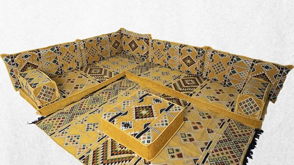 Yellow Floor Sofa Seating Set, Floor Cushions, Corner Arabic Sofa Set, Oriental Floor Seating, Arabic Furniture,L Shaped Arabic Majlis Jalsa