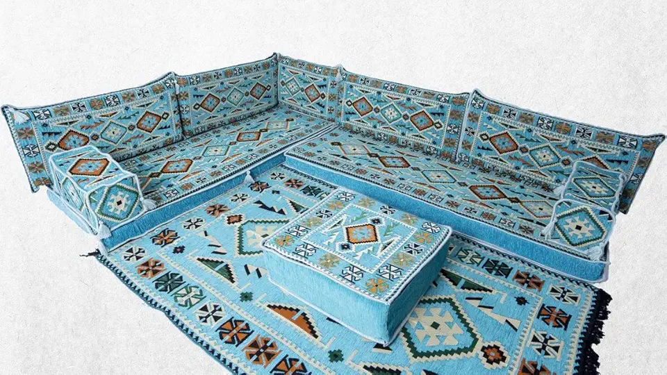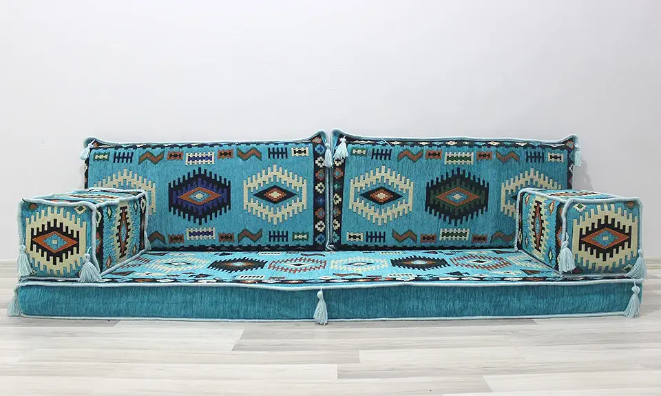 Turquoise Oriental floor cushion, Corner Sofa Set,Arabic seating jalsa, Bohemian home decor, Turkish Moroccan furniture,Meditation Yoga seat