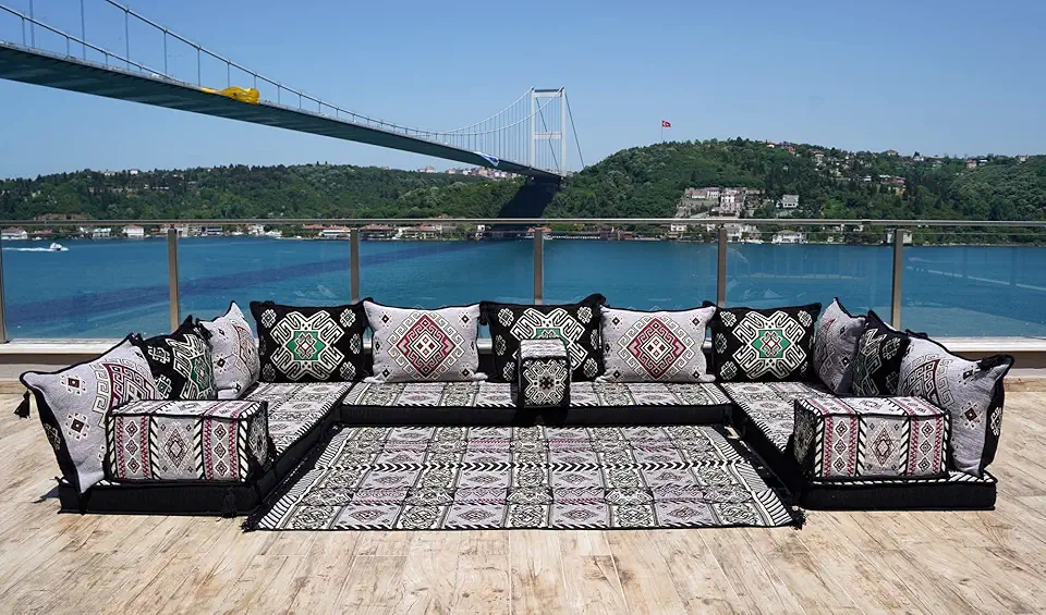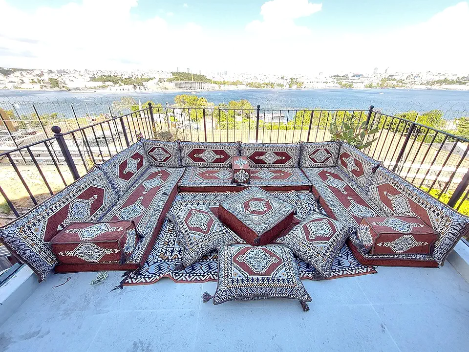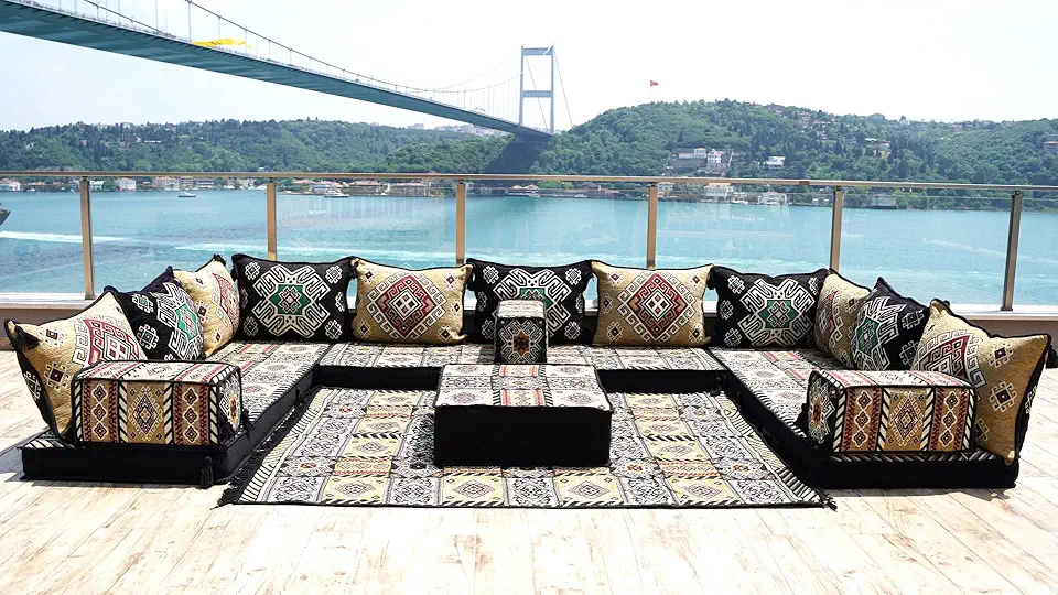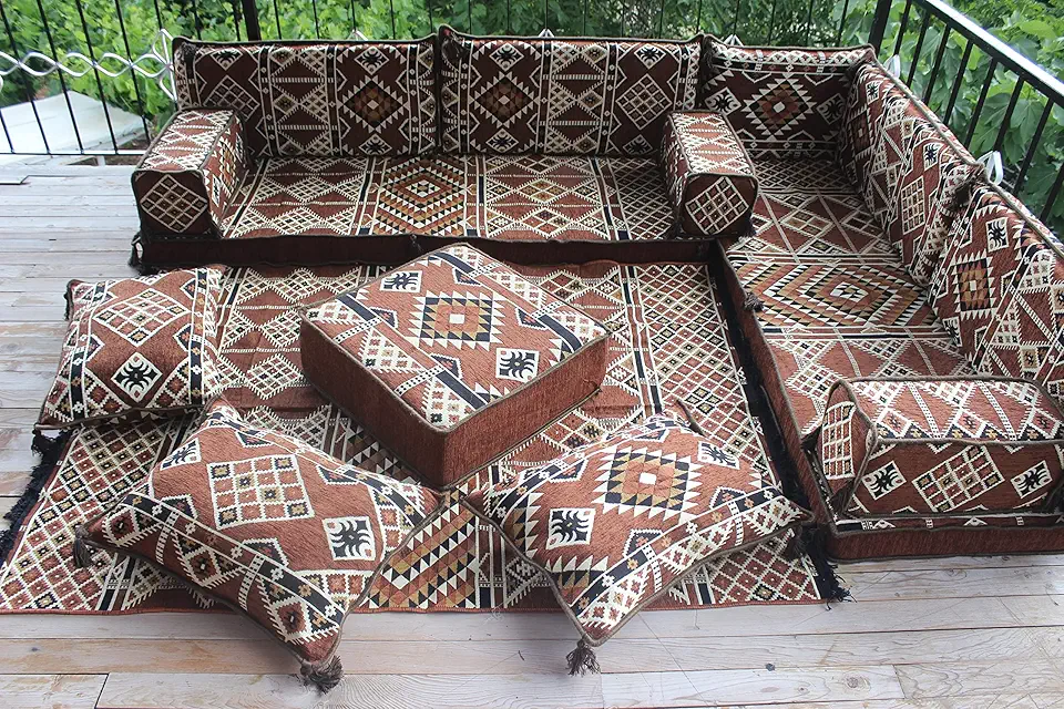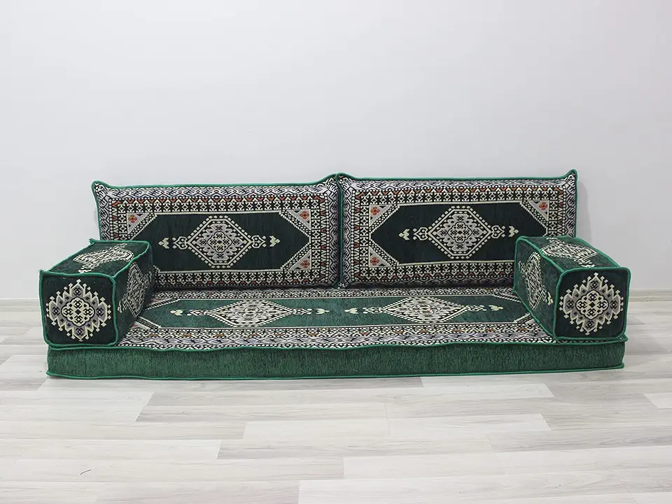 Corner Floor Sofa Seating Set, U Shaped Arabic Sofa Set, Oriental Floor Seating, Floor Cushions, Living Room Sofa, Arabic Majlis,Floor Couch (U Sofa Full Set)