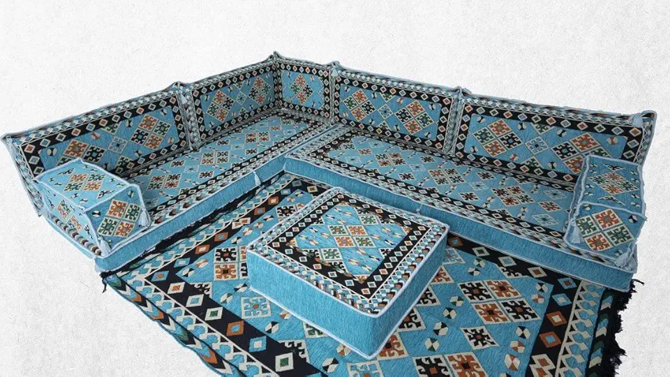 Loveseats, Pallet Sofas, Corner Seating,Turquoise Arabic Sofa,Meditation Mats, Arabic Sofa,Bohemian Sectionals,Floor Cushions, Floor Couches