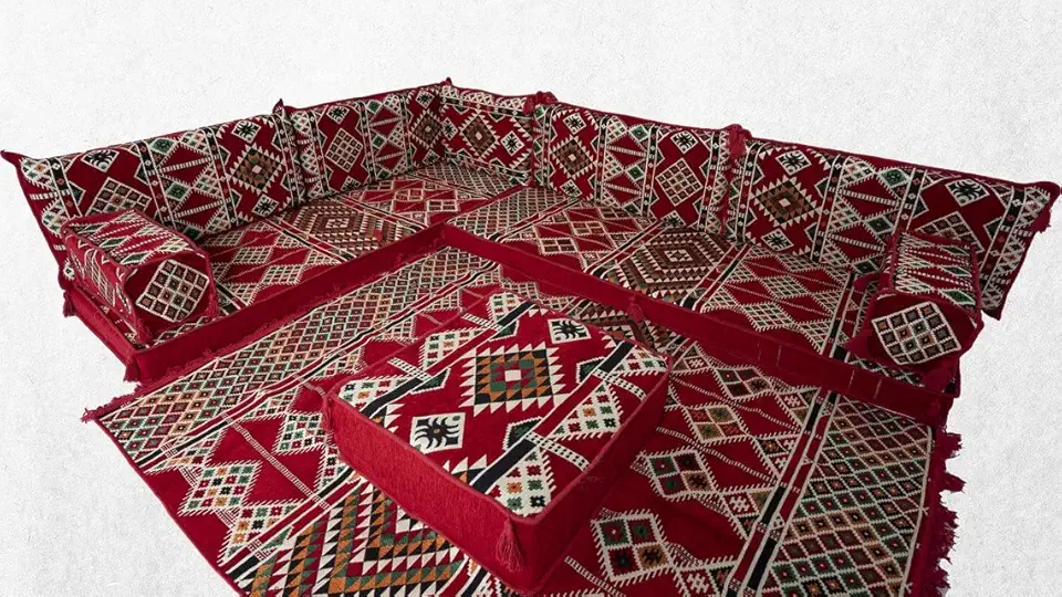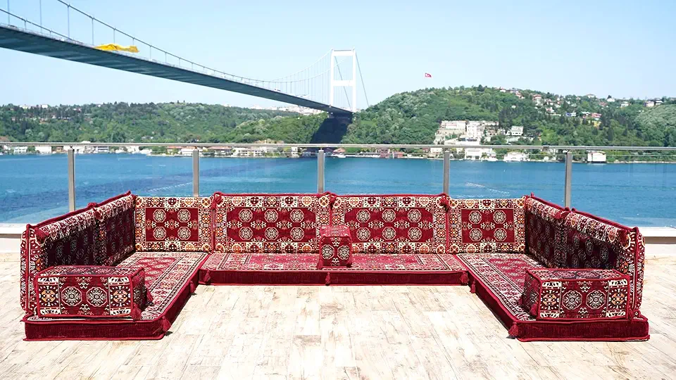 Floor Cushions, Corner Arabic Sofa Set,Floor Sofa Seating Set,Oriental Floor Seating,Arabic Furniture,Red Arabic Majlis,Arabic Jalsa