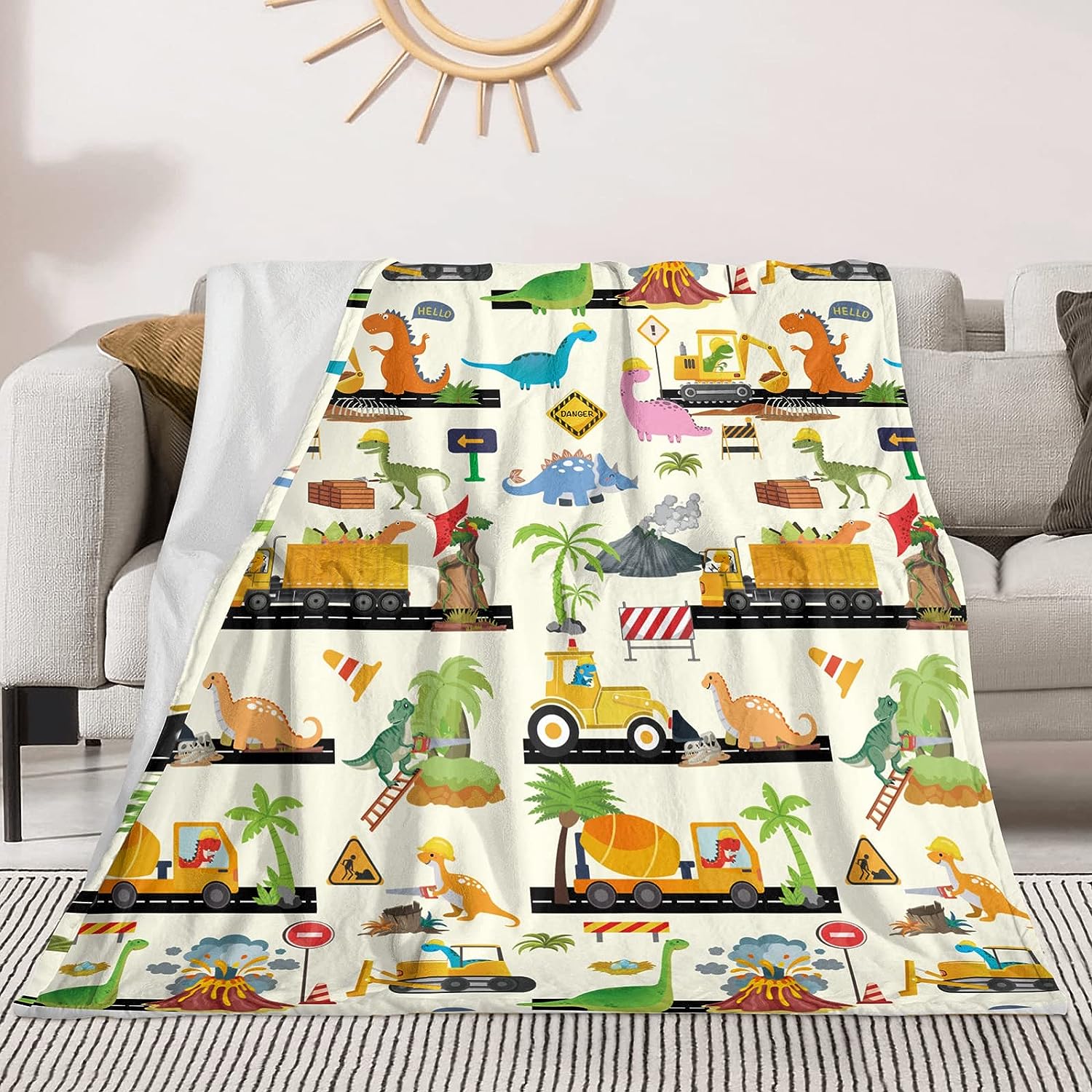 JOOCAR Dinosaur Blanket for Boys Girls Dinosaur Gifts Soft Warm Cozy Fleece Construction All Season Tractor Throw Blankets for Sofa Couch Bed Dinosaur Room Decor Blankets for Kids 60"x50"