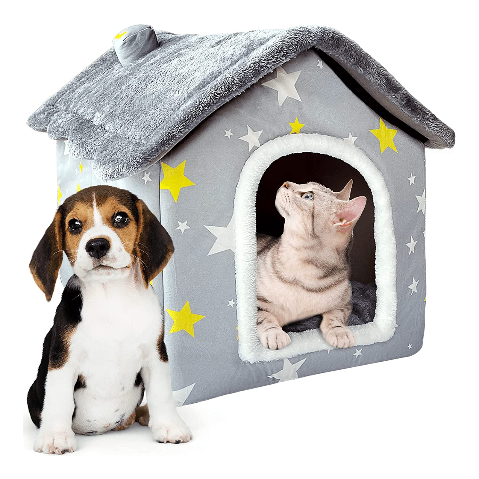 Foldable Pet Bed Tent - Cat and Small Dog House - Indoor Enclosed Warm Plush Sleeping Nest Cat Basket Puppy Cave Sofa with Removable Cushion - Travel Pet Accessories