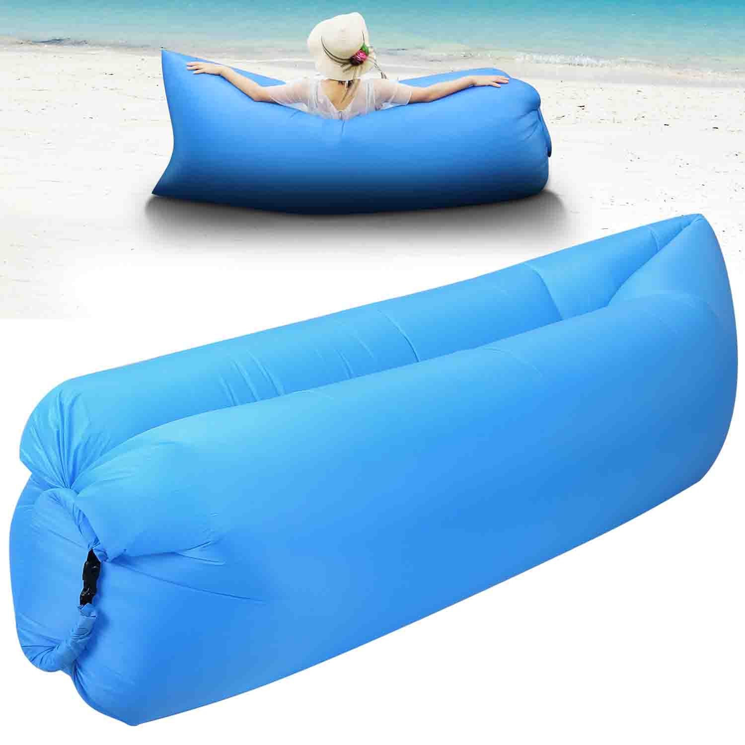 Air Lounger, iMountek Lazy Bed for Camping, Beach, Park, Backyard, Fast Inflatable Portable Wind Bed Lounger, Air Sleeping Sofa Couch(Sky Blue)