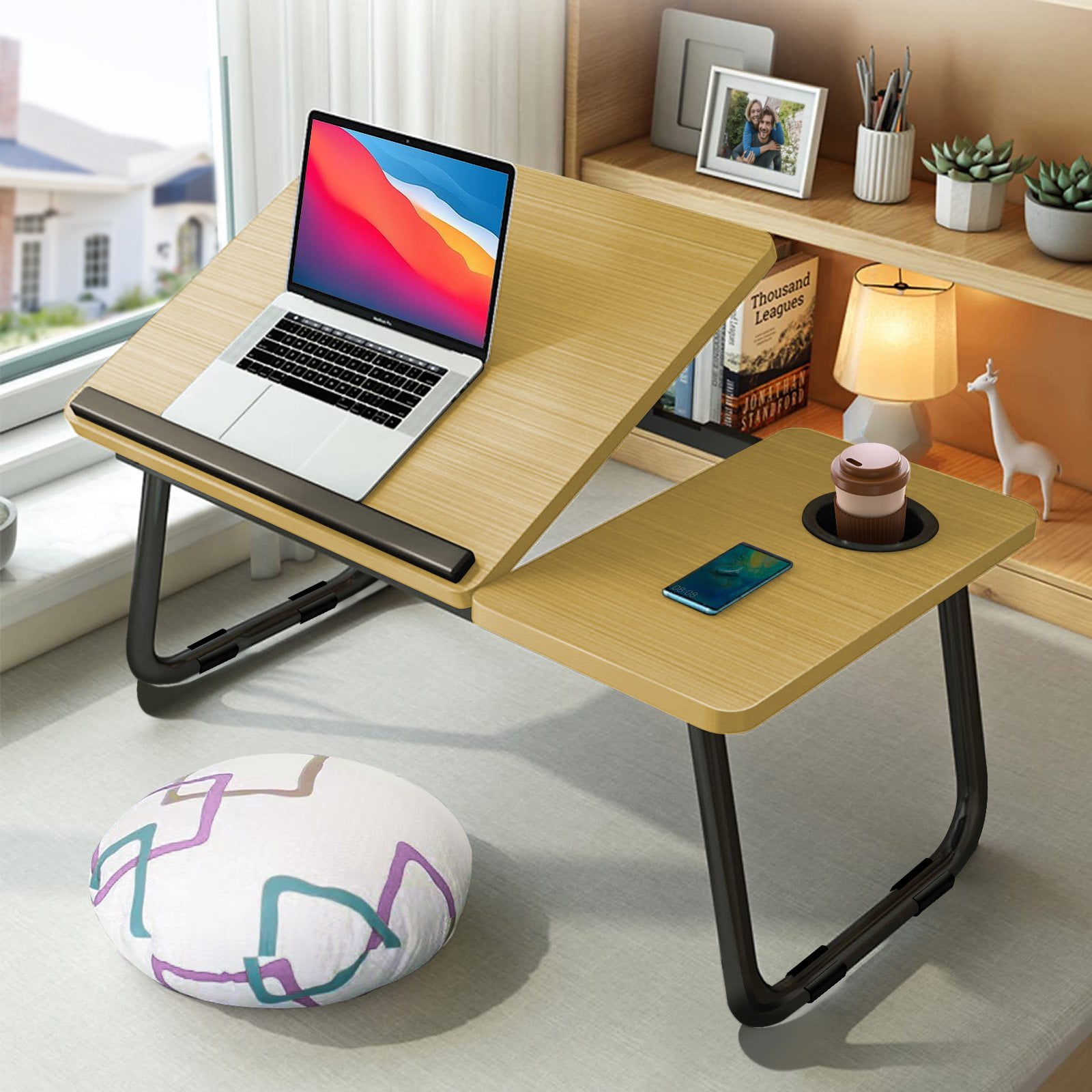Soges Adjustable Movable Laptop Desk Built-in Slot Computer Desk for Bed Sofa ,Writing Table, Side Table,Maple