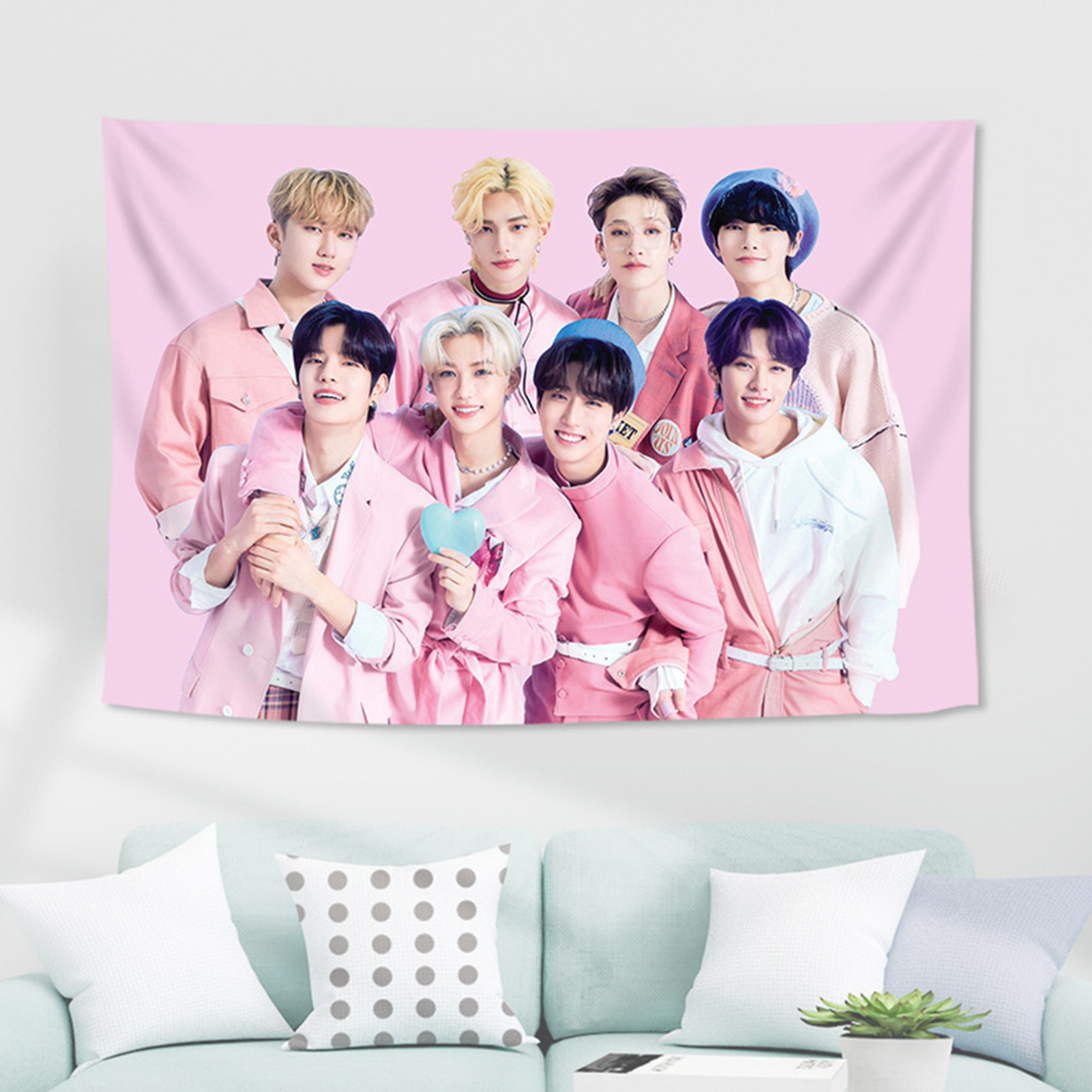 DraggmePartty 95*75cm Kpop Stray Kids Printing Polyester Tapestry Wall Hanging Sofa Dormitory Wall Decoration Poster