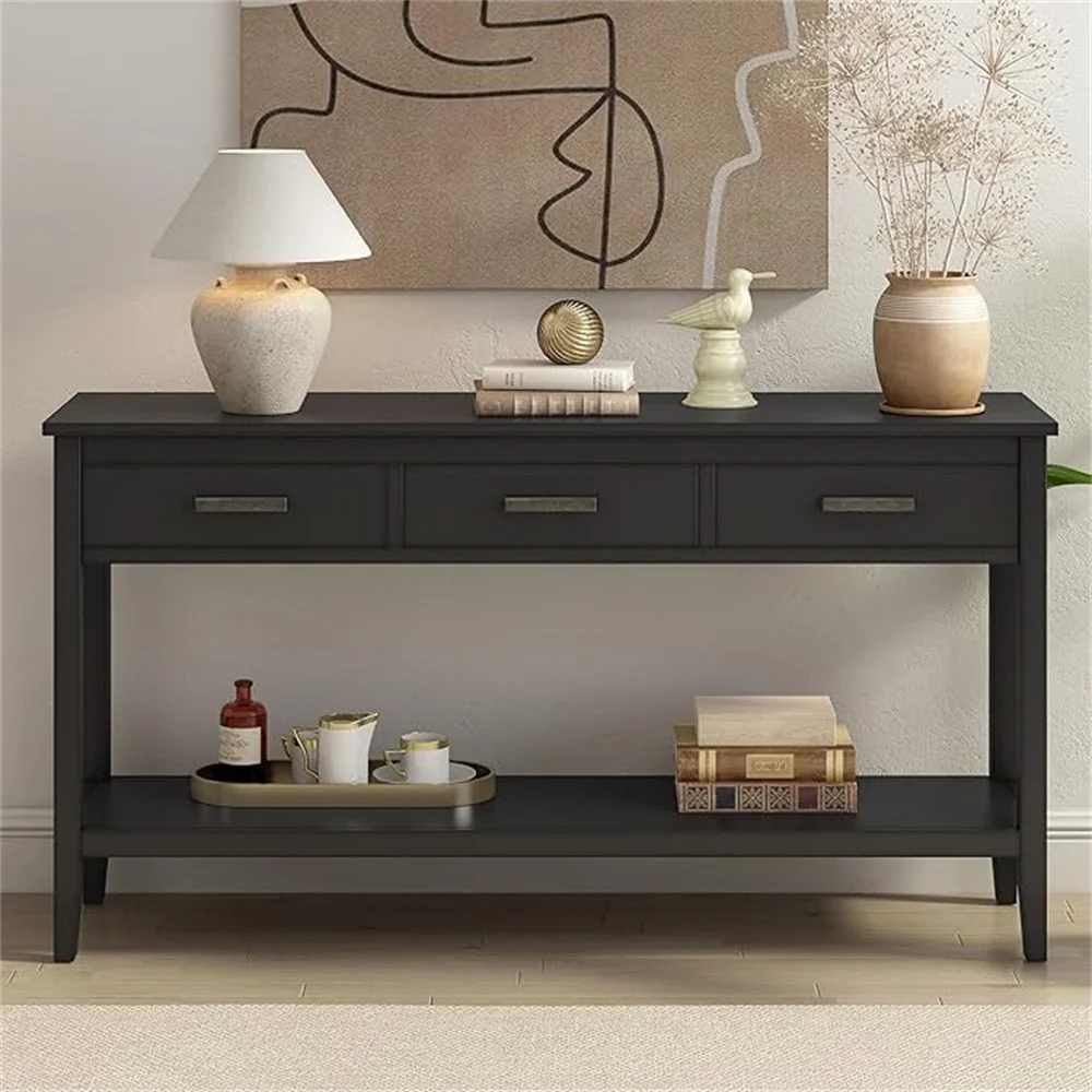 KEAIDO Modern Wood Console Table Extra Long Entryway Table Sofa Table with Drawers & Open Storage Shelf