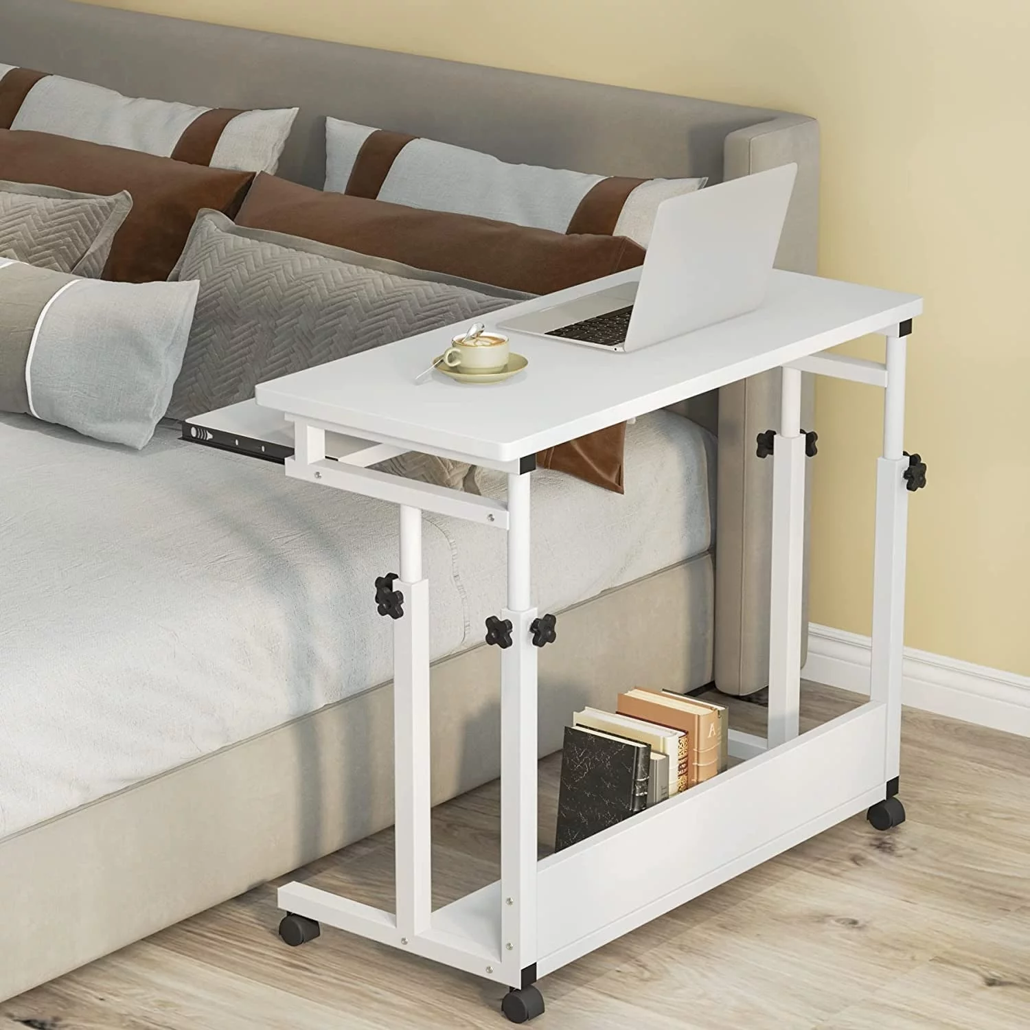 Portable Laptop Desk for Sofa and Bed, Height Adjustable Small Standing Table White