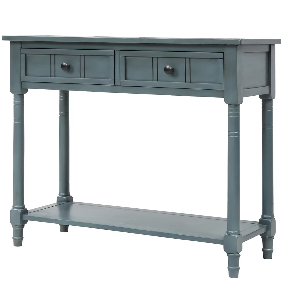 Kepooman Traditional Design Console Table, Acacia Mangium Sofa Side Table with Two Drawers and Bottom Shelf, Storage Cabinets for Entryway, Navy