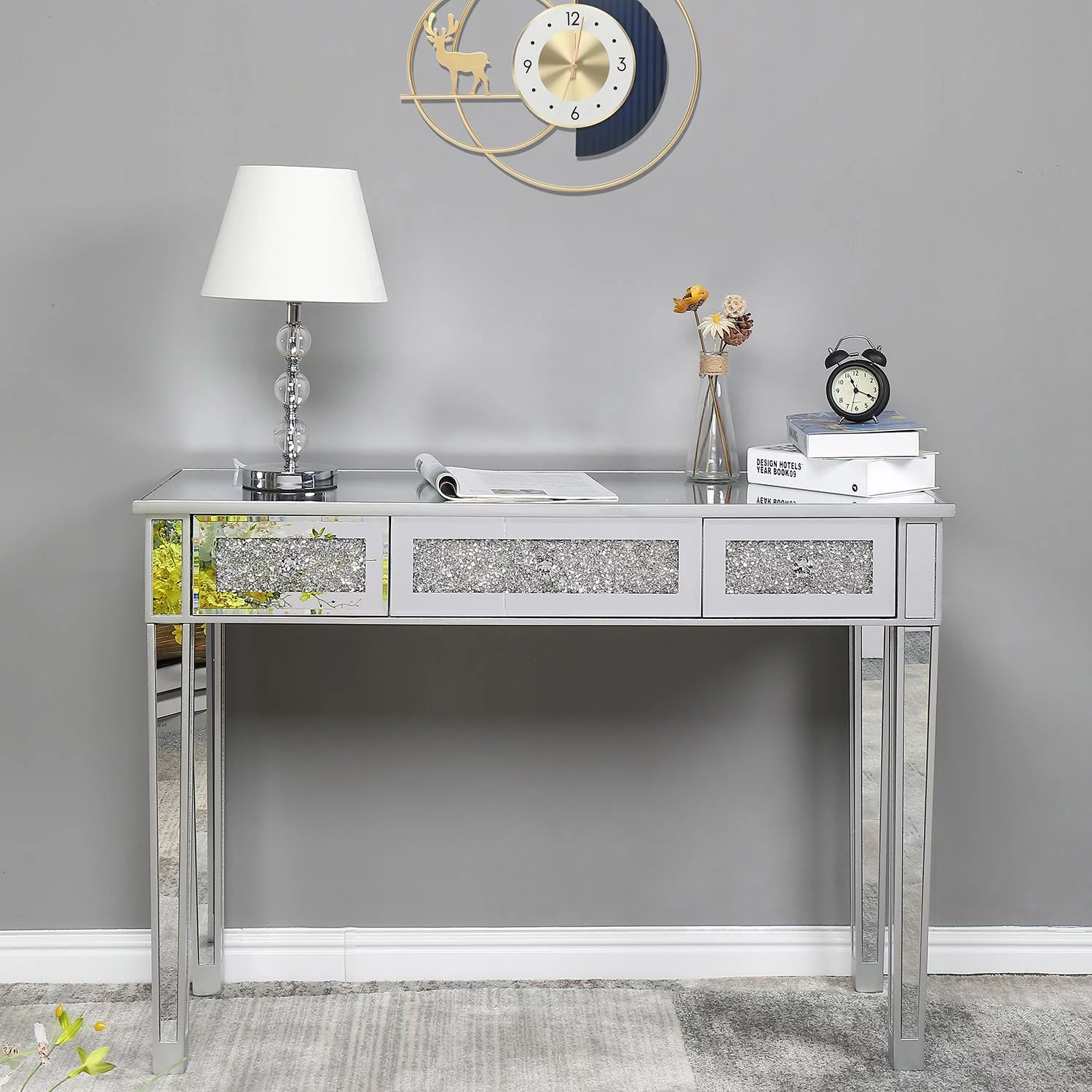 GoDecor Mirrored Vanity Desk with Drawers for Bedroom Silver Sofa Table Modern Console Table for Entryway/Foryer/Bedroom, Silver