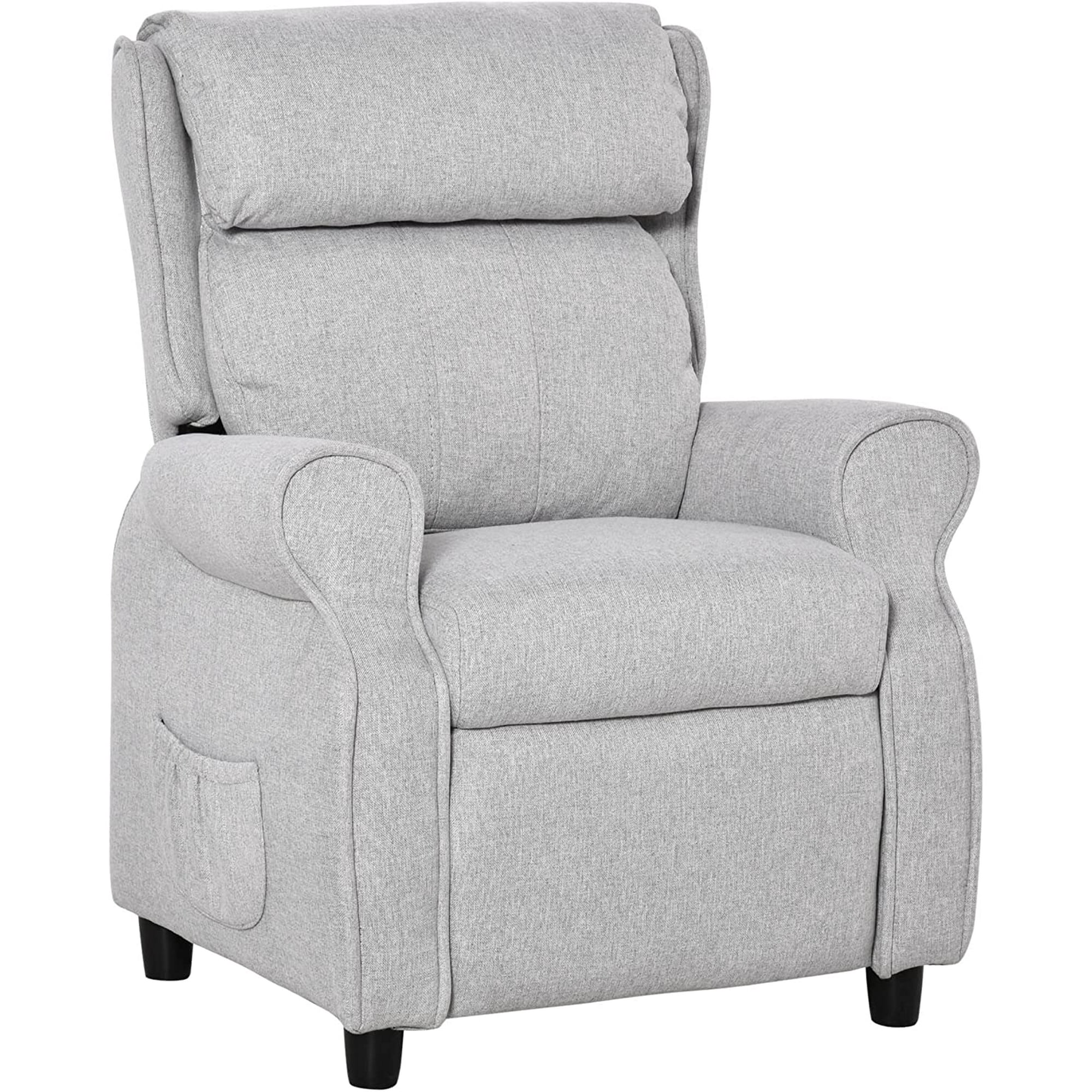 Kids Recliner Chair Children Sofa Angle Adjustable Single Lounger Armchair Gaming Chair with Footrest 2 Side Pockets for 3-5 Years, Light Grey