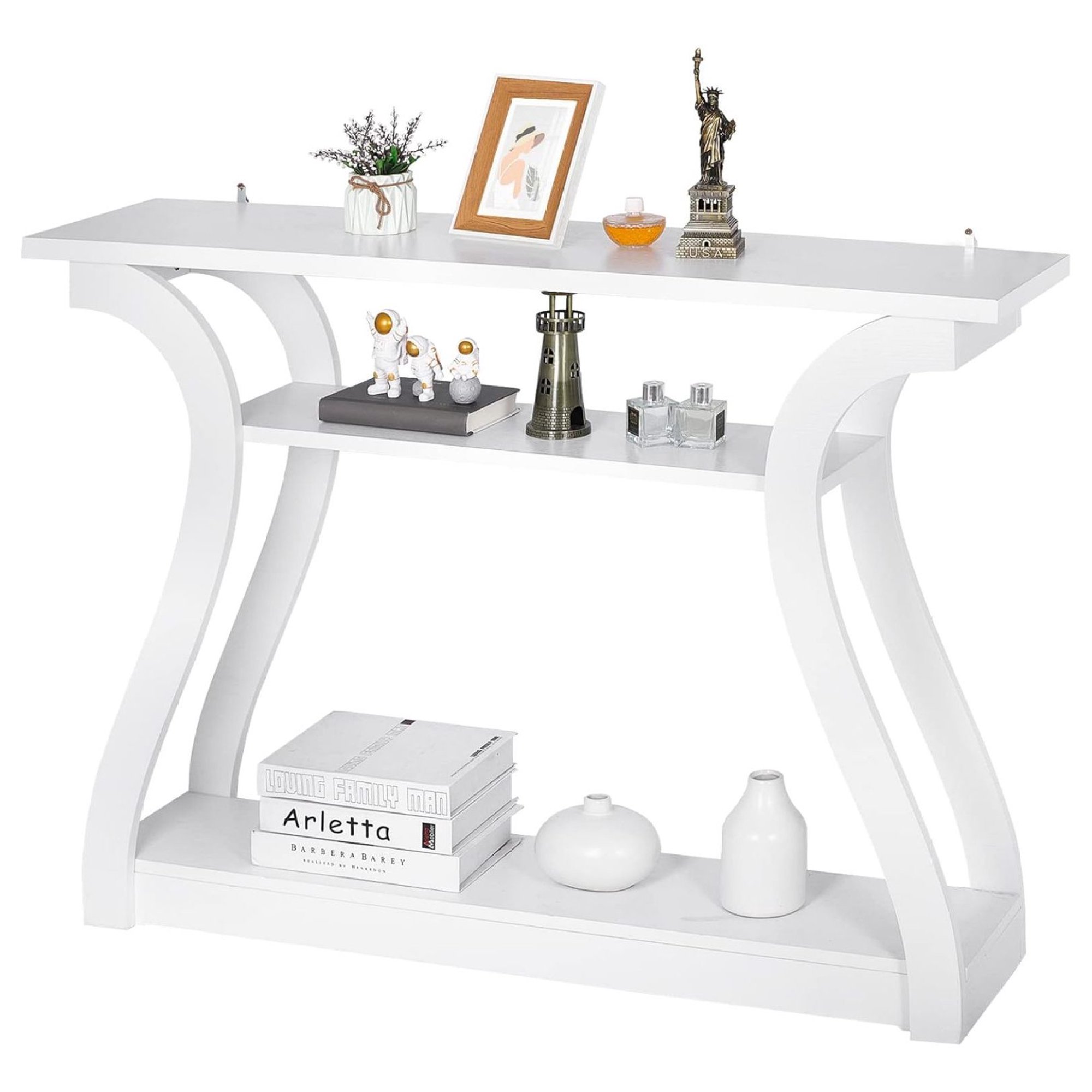 Killeryuki Wood Console Table with Curved Legs and Shelf, 3 Tier Modern Accent Sofa Table for Entryway, Living Room, Hallway, 47 in Wide, Easy Assembly (White)