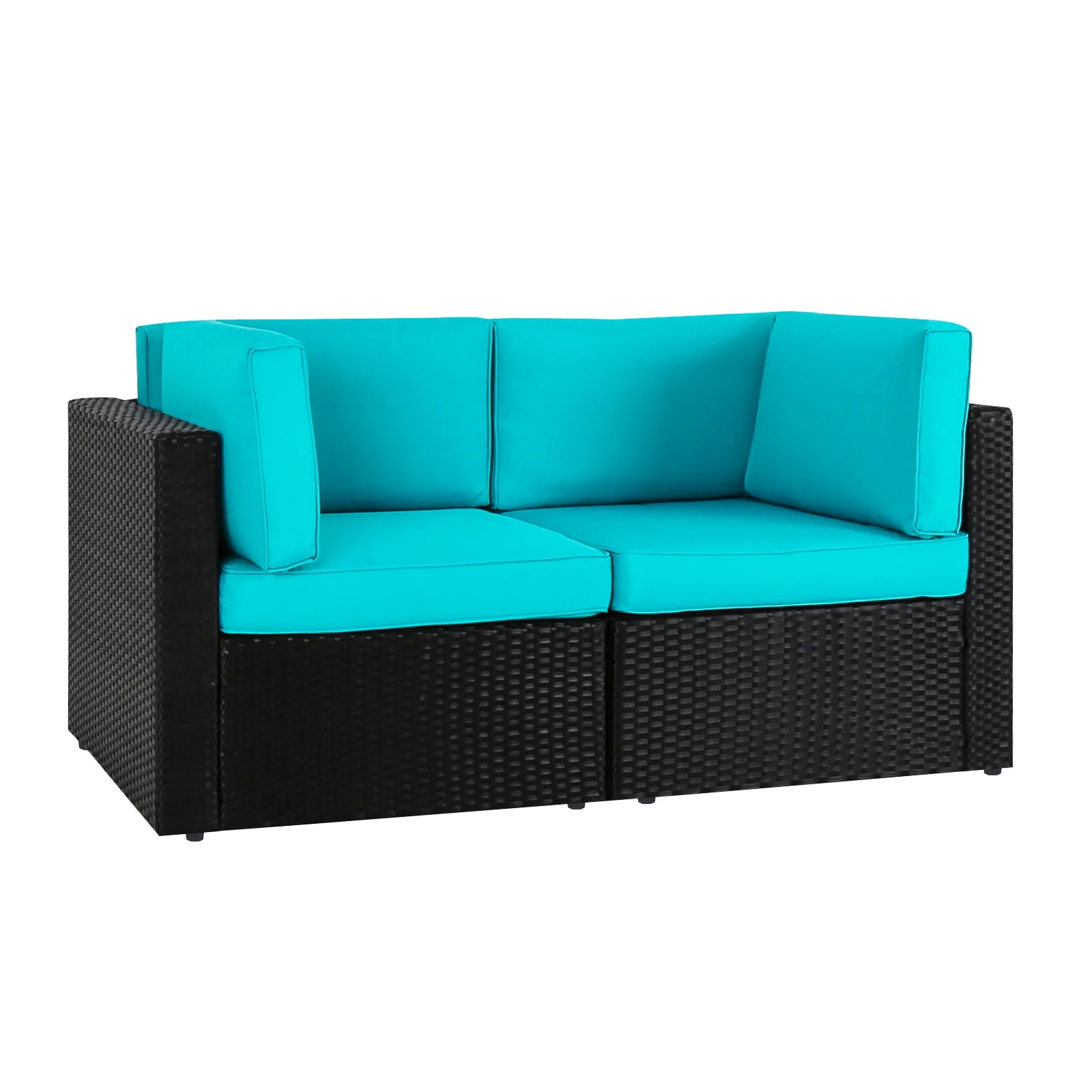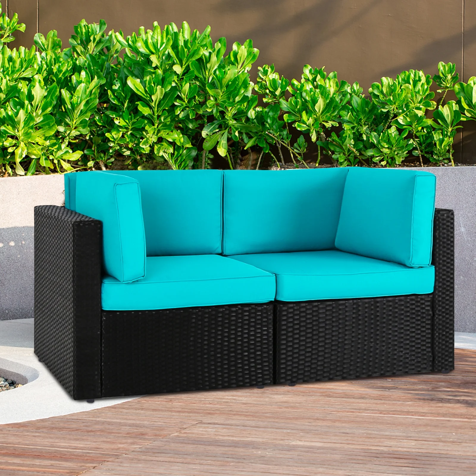 Kinbor 2pcs Outdoor Patio Rattan Wicker Furniture Sectional Sofa Set with Blue Cushions