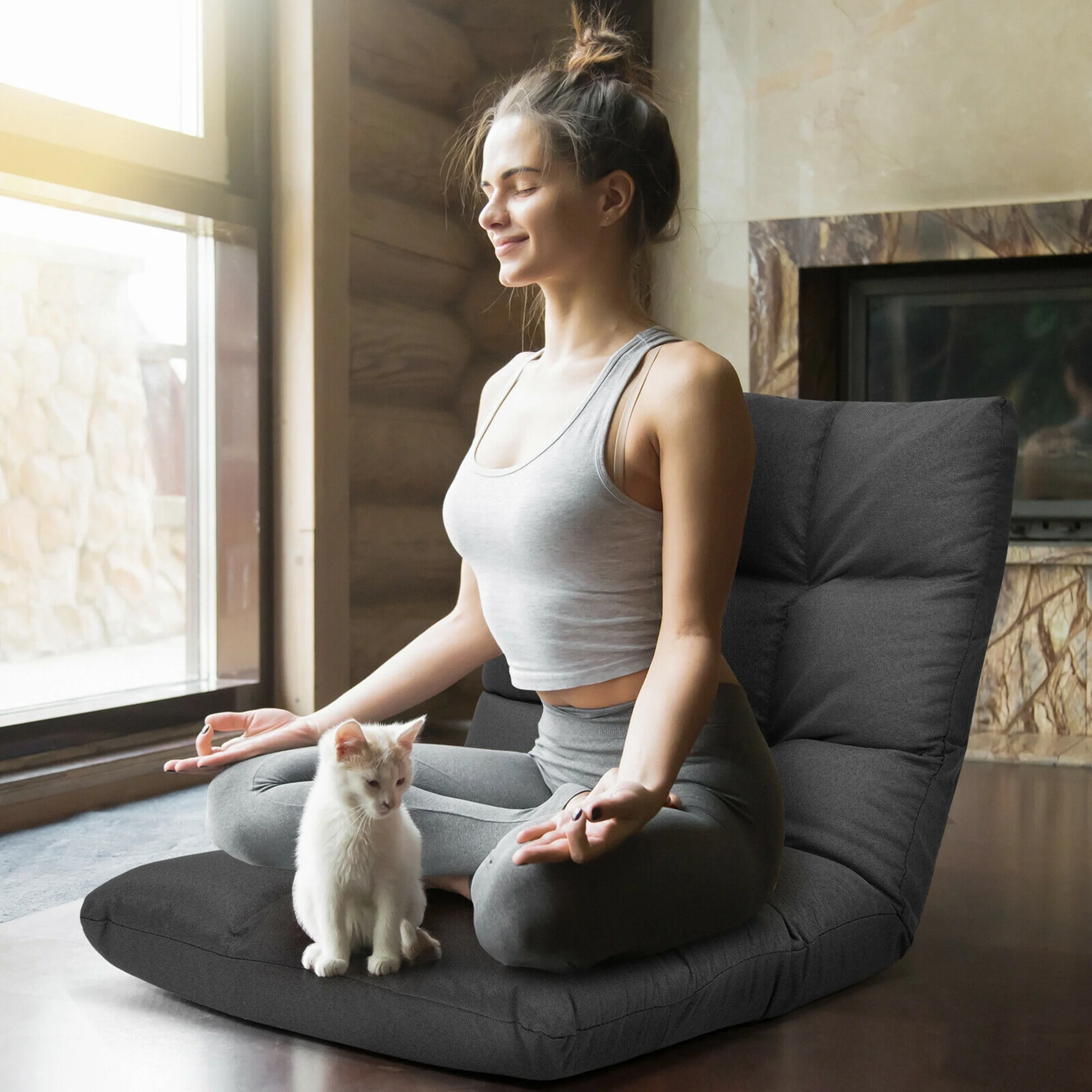 Gymax Fashion Adjustable Folding Gaming Chair Cushioned Floor Chair Adjustable Folding Lazy Sofa Gray