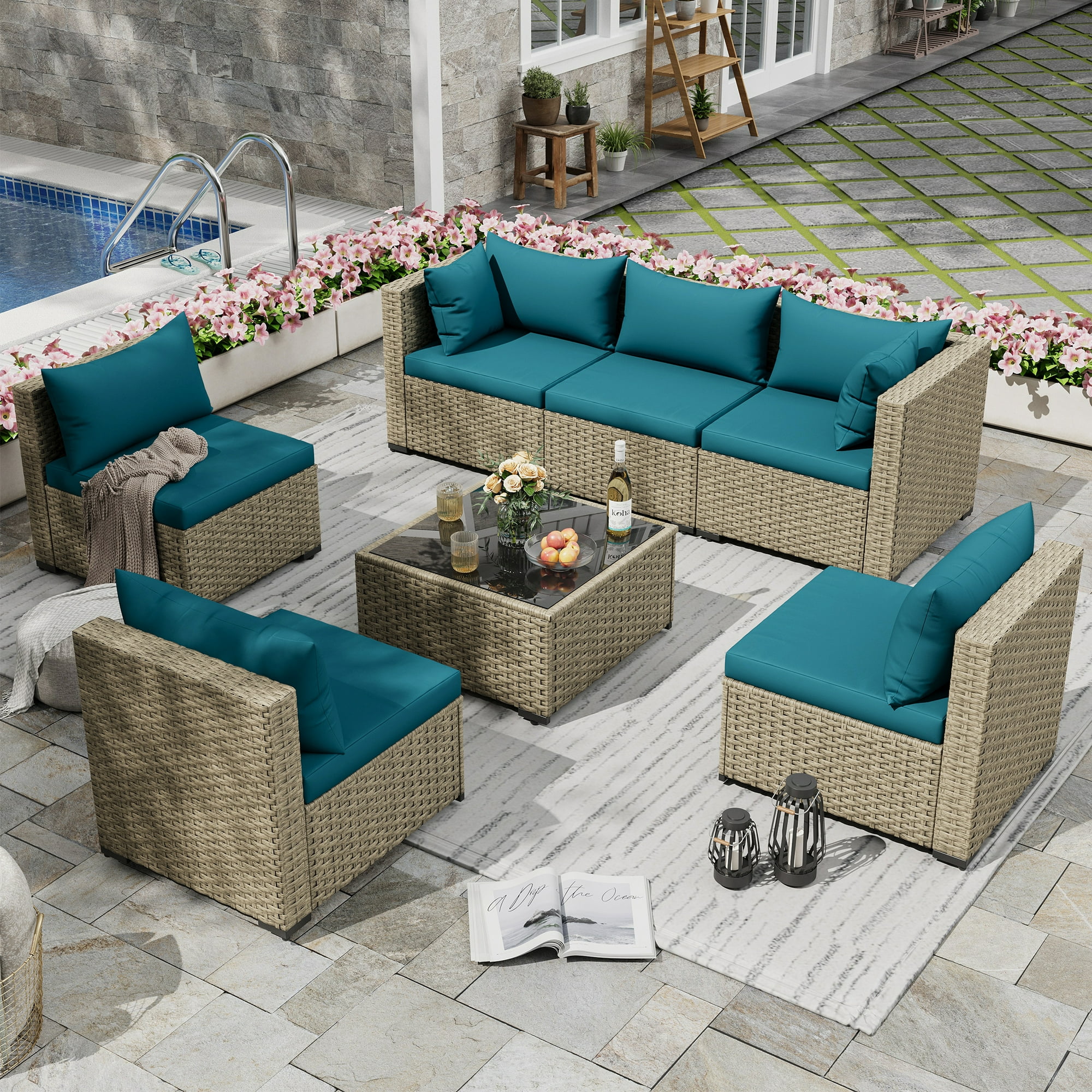 Poteban Patio Furniture Sets, Modular Rattan Outdoor Patio Sectional Furniture Sofa Set, Wicker Patio Conversation Set for Backyard,7PCS