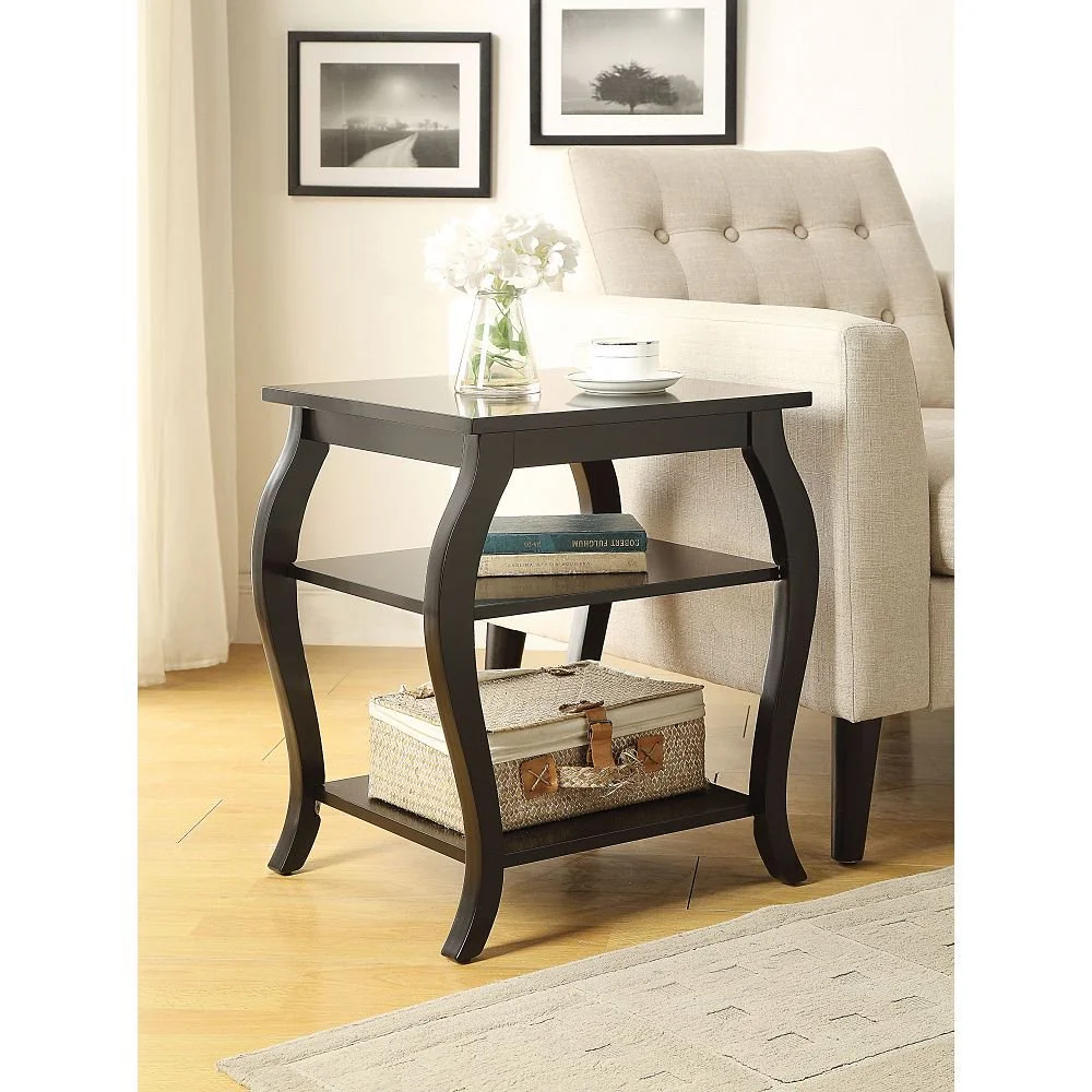 Hassch Square Sofa Side Table 3-Tiers Storage Shelf Wooden End Desk for Bedroom Living Room, Black