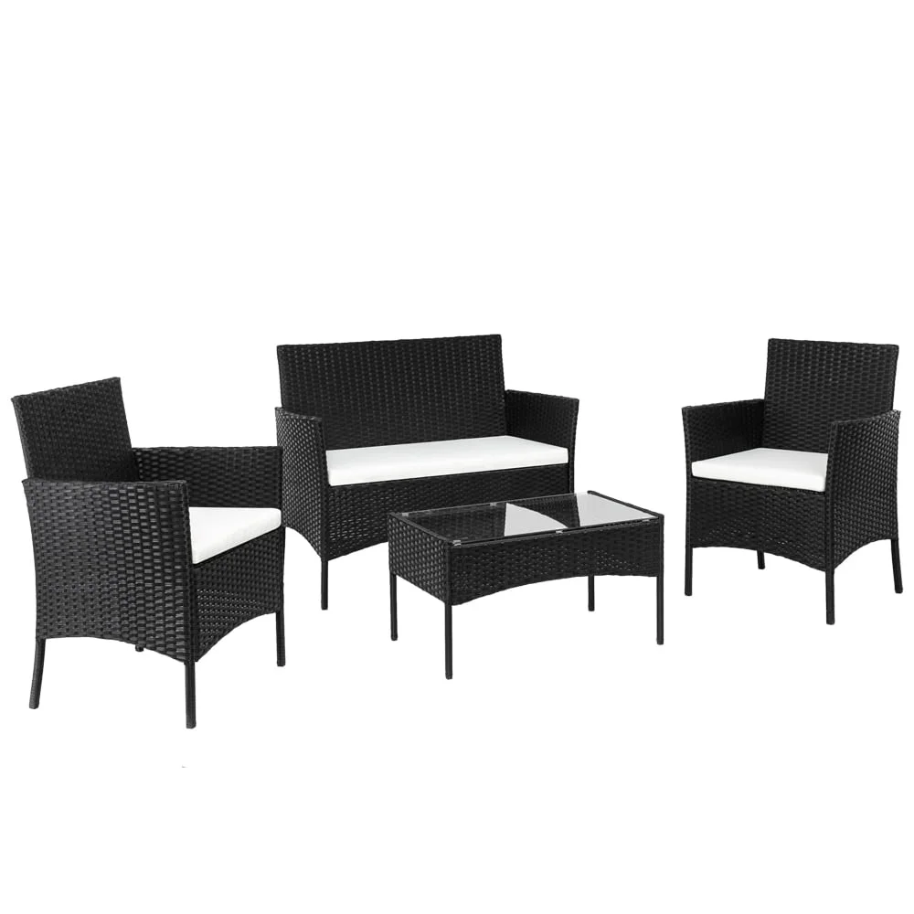 LemoHome Outdoor Patio Furniture Set, 4 Pieces Rattan Conversation Set Cushioned Sofa & Charis, Deck Garden Poolside Furniture Table Set for 4, Black